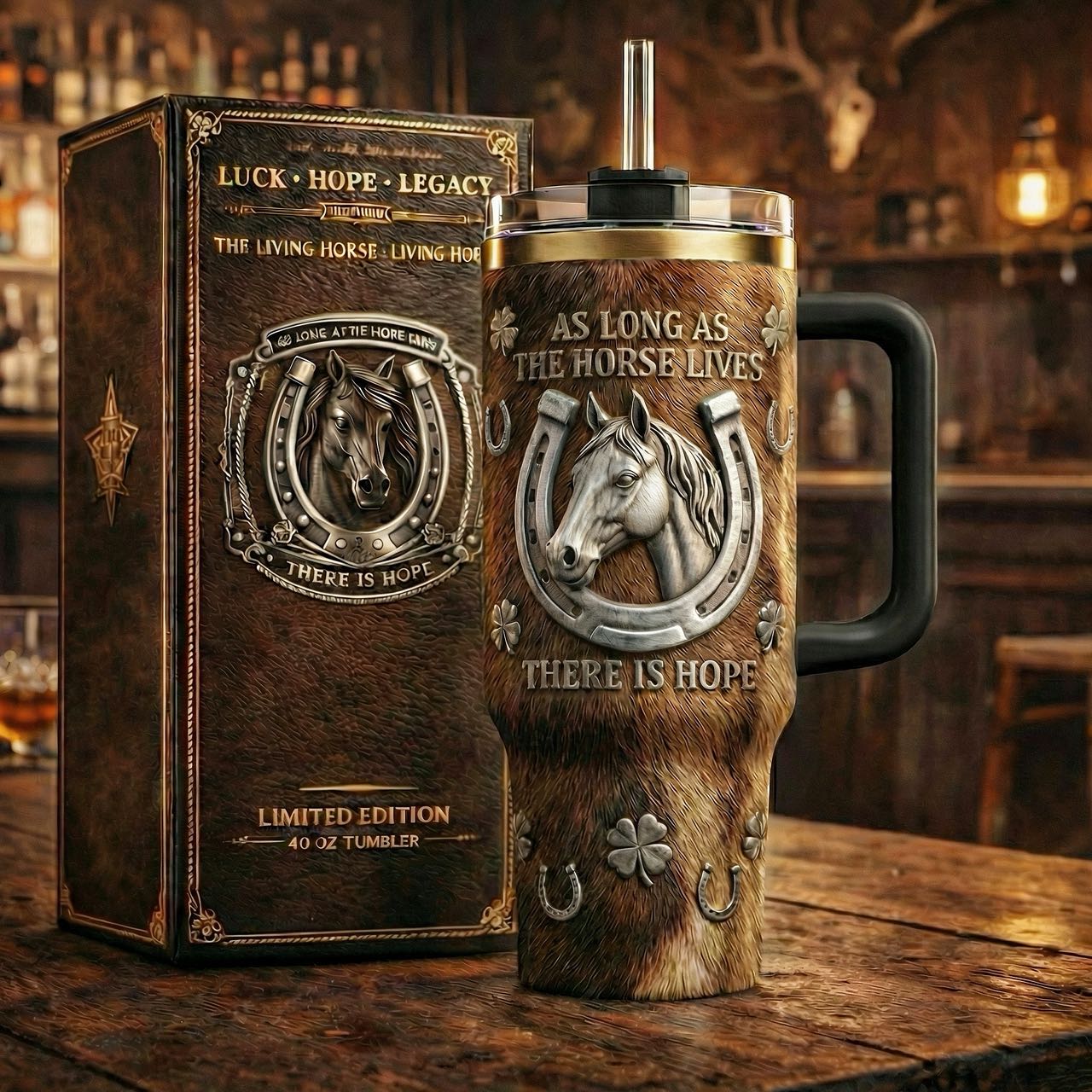 As long as the horse lives, there is hope. A tumbler that reminds you every single day. 🐎🤍